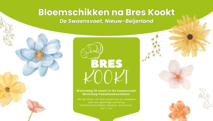Die avond staat bij Bres Kookt Babi Ketjap met nasi, atjar en kroepoek op het menu. Mee-eten mag, maar je kunt ook alleen deelnemen aan het bloemschikken. Aanmelden kan tot 20 maart.